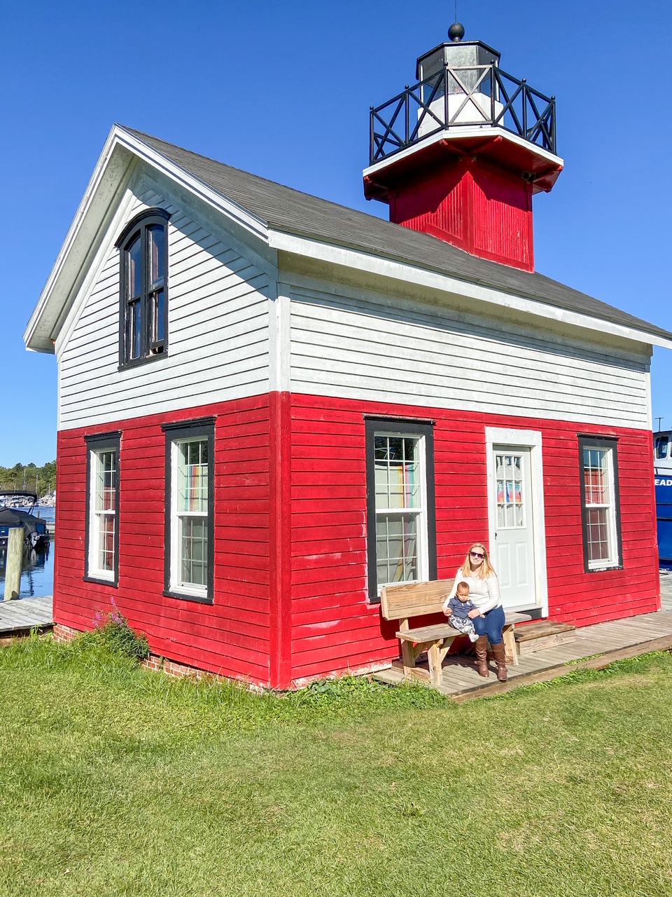 First up is a quick pit stop out of the car to stretch your legs. At this spot, you’ll see a 2002 replica of the 1859-built Kalamazoo Lighthouse. The original was destroyed by a tornado in 1956. While the original was buff with white trim, this replica is red and white! It’s also located in a different location.