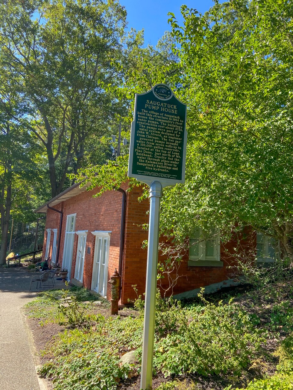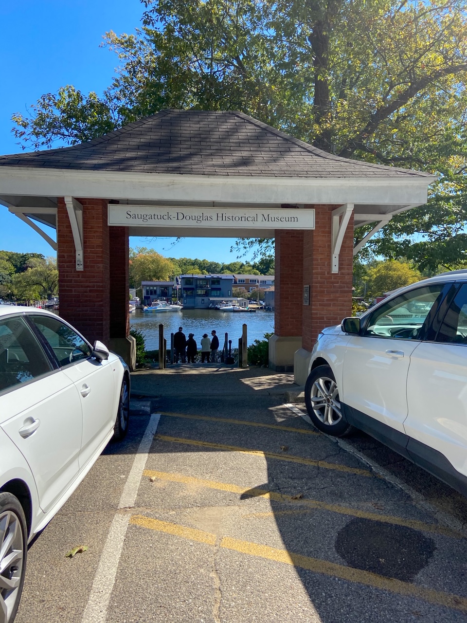Next up we parked at the Mt Baldhead lot and crossed the street to check out the outdoor exhibit at the Saugatuck-Douglas History Museum. Unfortunately the museum is closed due to Covid, but in normal times the museum is open on the weekends 12-4pm for free during September and October! If you’re planning to visit between Memorial and Labor Days, cross from Saugatuck on the Historic Chain Ferry!