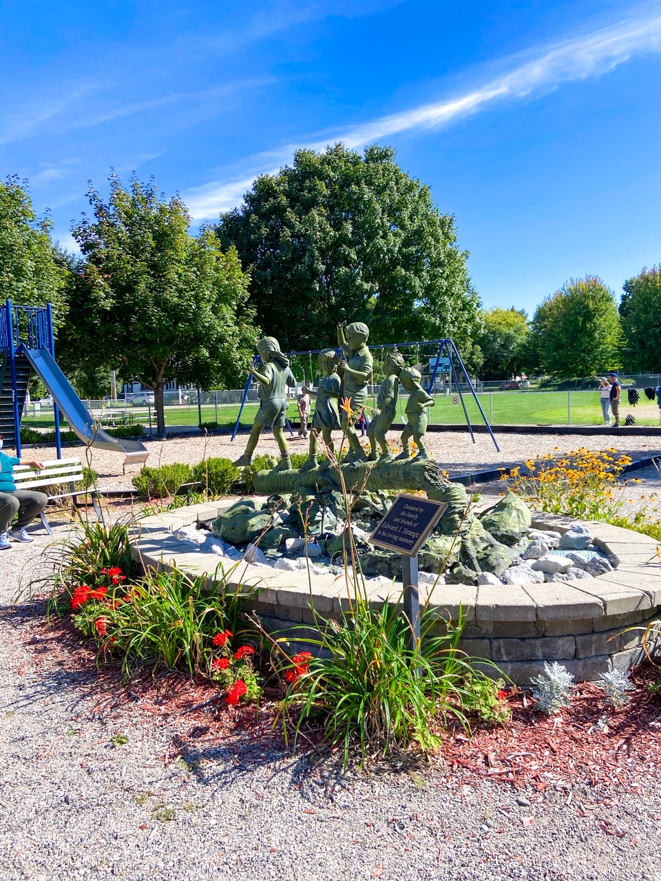 Beery Park is a quaint 1.2 acre park east of the shops and restaurants along Center Street. There is a ball field, basketball court, and playground for the kids to get all their wiggles out. Towards Center Street there is a cute statue of children playing on a log with benches and flowers around it. Also by the park is a public restroom.