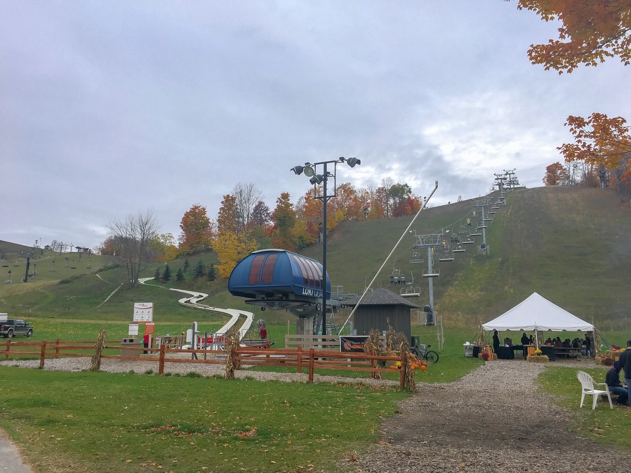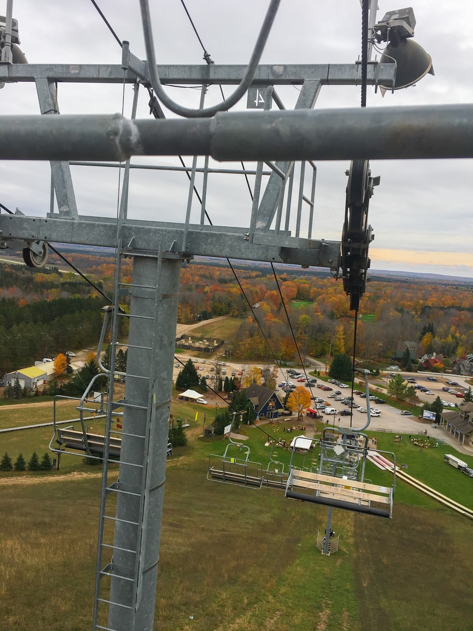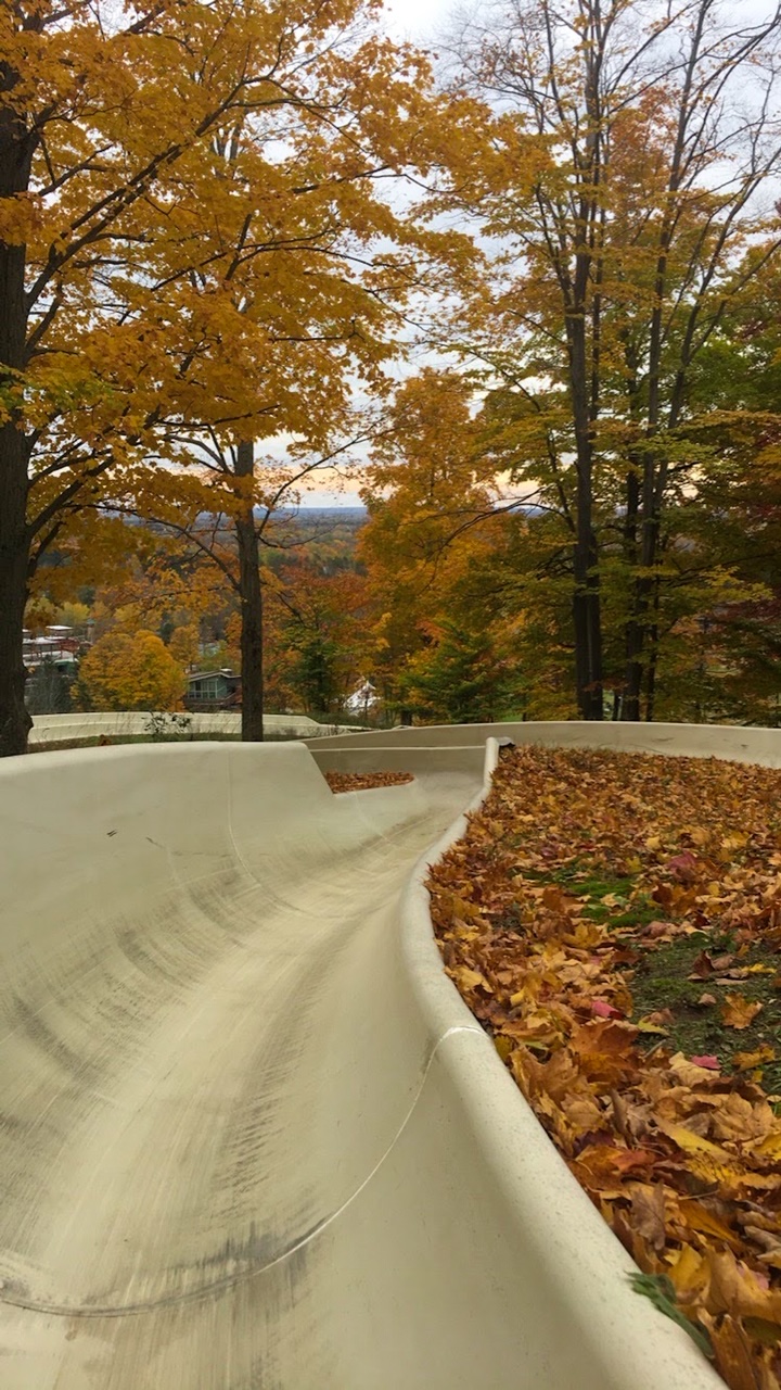 The first stop on the one fall color tour you must take in Northern Michigan is to Crystal Mountain! If you’re traveling as a couple, friends, by yourself, or with children, there are so many things to do here! While we purchased a one time ride down the alpine slide, Crystal Mountain offers day passes and more! Not only will you see beautiful fall colors on the way down on the alpine slide, but in order to get to the top of the mountain, you use the chair lift. This lift brings you above the tree line and behind you, makes it possible to see all the trees in the valley below.