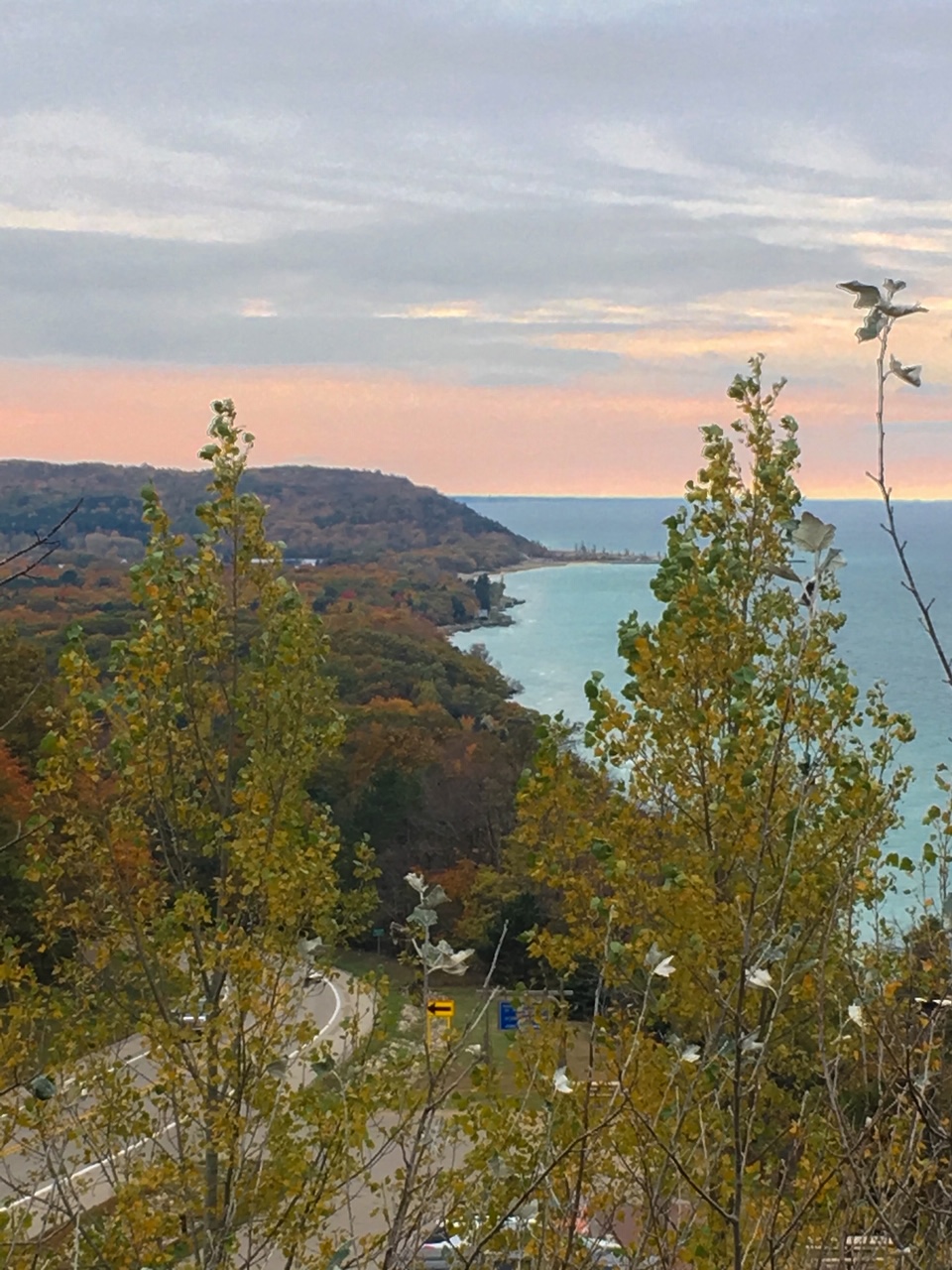 Smeltzer ends at the junction with US-31. Turn right then turn left onto Joyfield Road. This road ends at M-22. Turn left onto M-22 then continue for almost 2 miles until you reach the Arcadia Scenic Turnout (aka Inspiration Point).