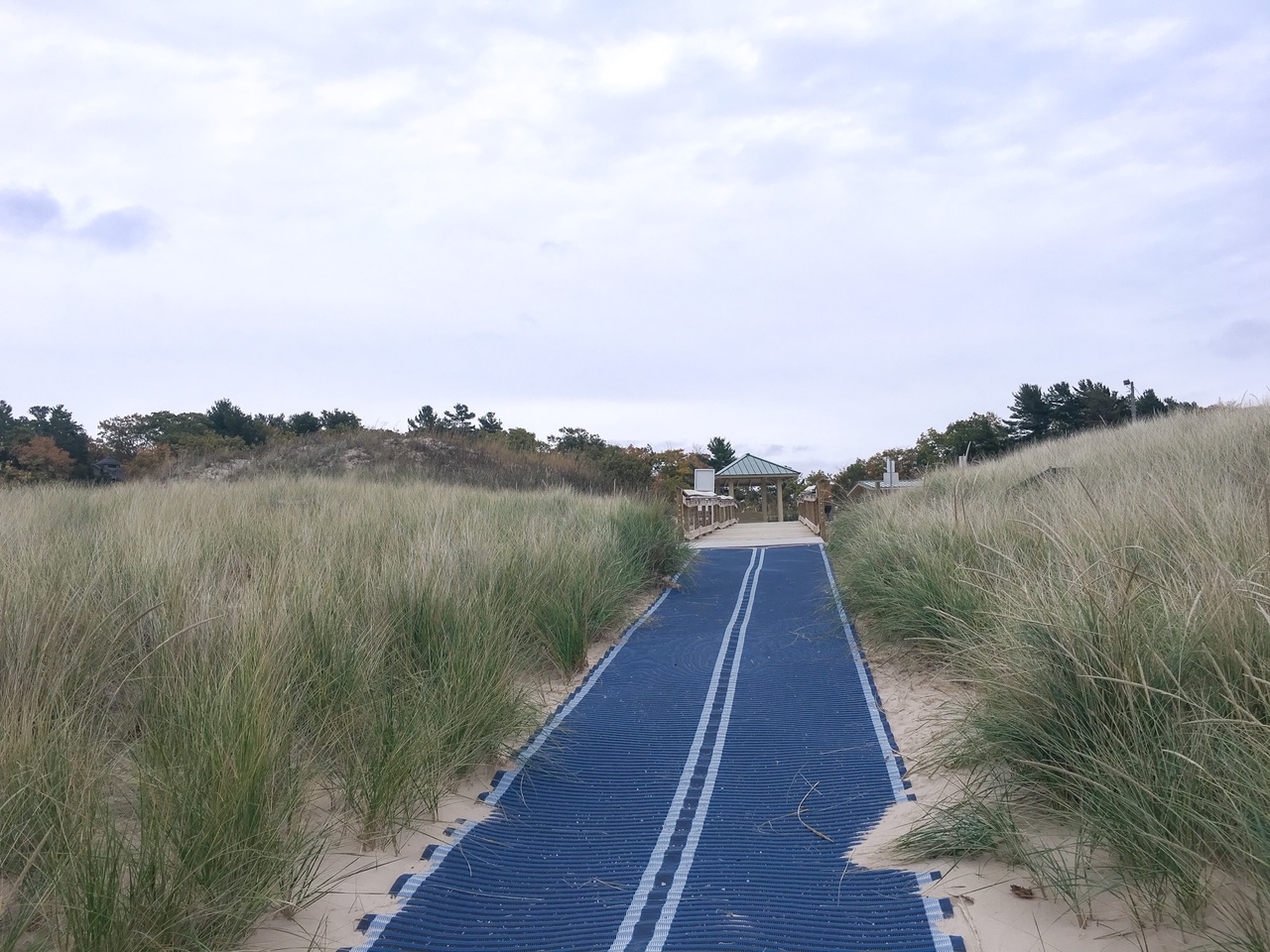 Before winding down the color tour in Manistee, we stopped at the Captain John Langland Park Beach in Onekama. This stop is about halfway between Arcadia and Manistee. The beach is a short walk through the dune grass from the parking lot. Fall is a great time to see some big waves on Lake Michigan.