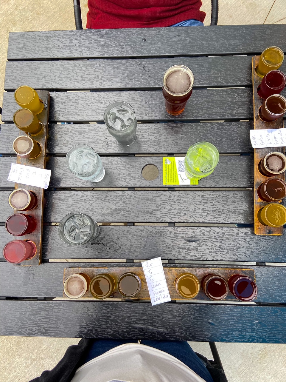 Starting out, we stopped by Robinettes Apple Haus to pick up donuts and do wine tasting. After that, we drove to Third Nature Brewing for lunch and beer flights. Once we finished, we painted a piece of pottery at Accidental Art.