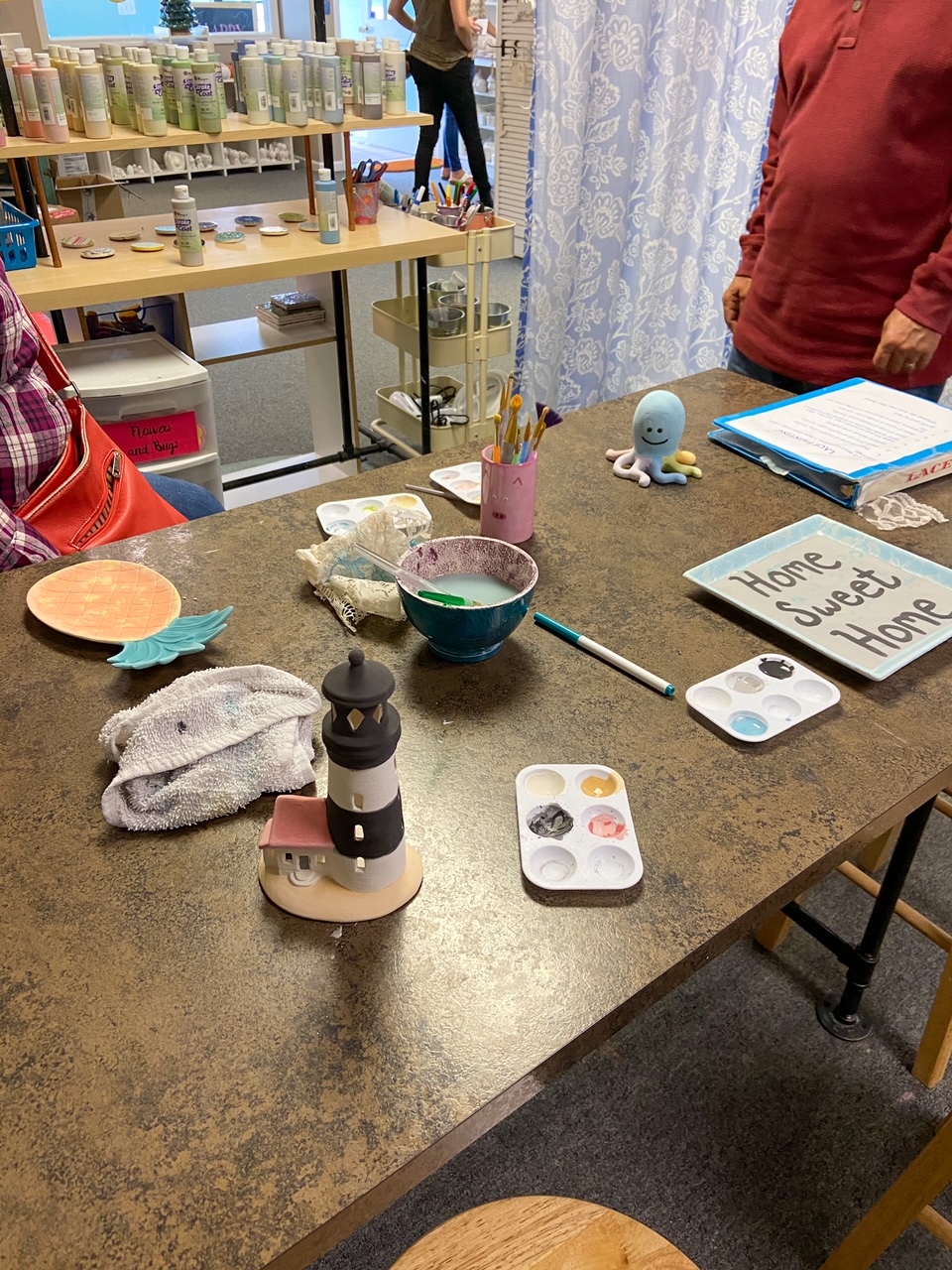 Next up we stopped at locally owned Accidental Art to paint pottery! (We figured it best to have a drink or two before painting to get the creative juices flowing).
