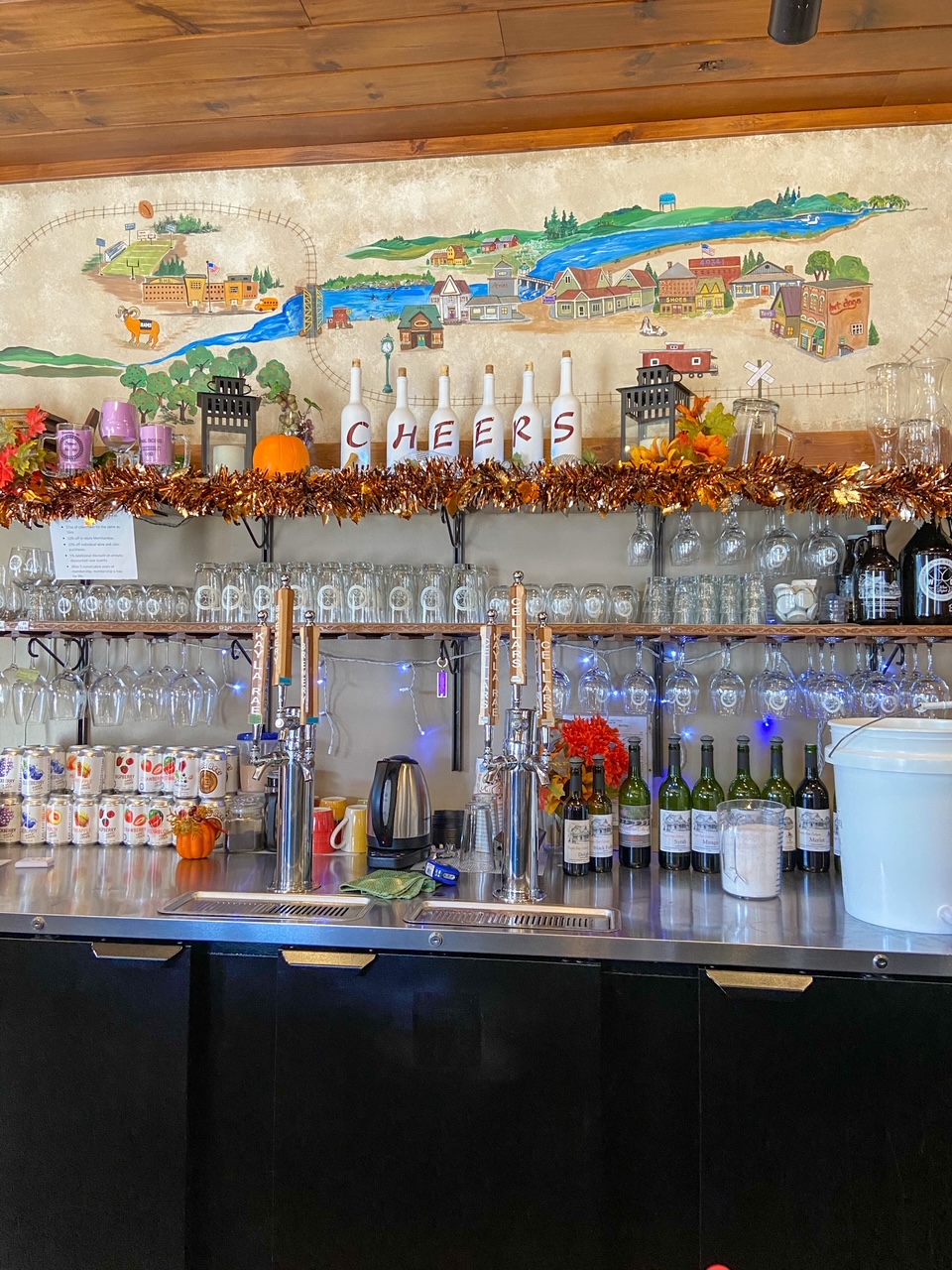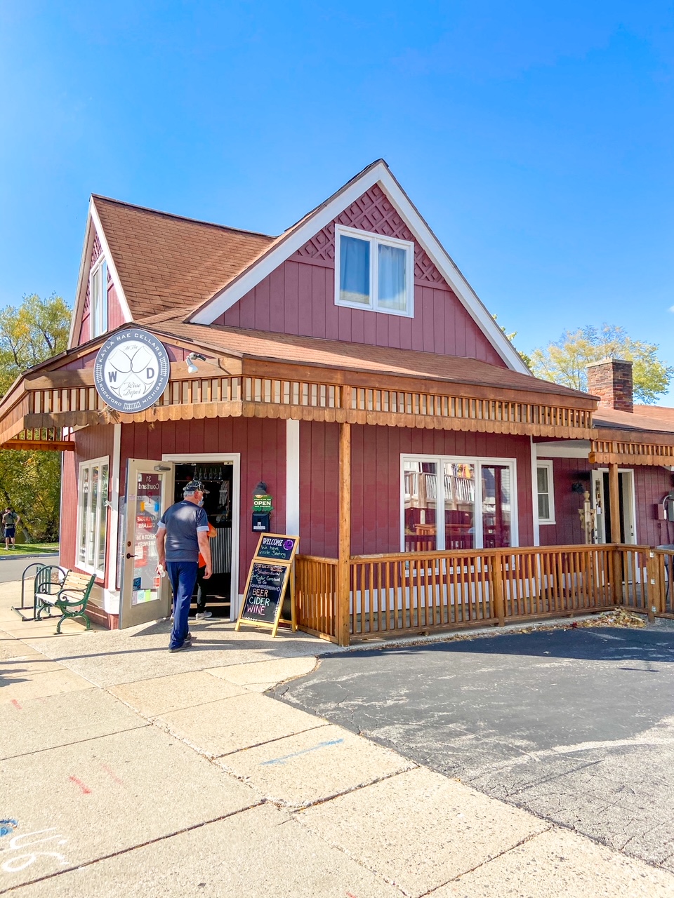 Then, we drove and parked in downtown Rockford where we enjoyed a drink at Kayla Rae Cellars, walked around the shops, and stopped by the Dam Overlook. We wrapped up our day trip at the Corner Bar, a Rockford institution recently rebuilt after destroyed by a fire in 2017.