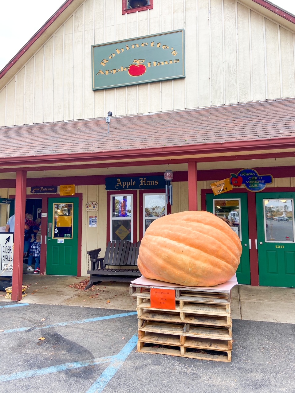Robinette’s is an extremely popular apple orchard in the Grand Rapids area. Their donuts are well known and beloved by local residents. Because of its popularity, Saturday’s in the fall are pretty busy. When we arrived at 10am, there was already a line out the door just to buy donuts! And on the way out, that line grew to almost reaching the road! Their pumpkin and cinnamon sugar donuts are worth it!