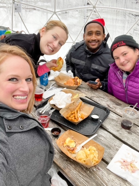Our reservation at Hop Lot was at 1:30 PM. After checking in, we received a paper giving us our igloo number and check out time. Once seated at our igloo, we scanned a QR code to access their beer and food menu. All ordering and payment is done through the phone. Even though the reservation is only for an hour, the staff is fast! Not even 5 minutes after we ordered, a server gave us our drinks on a small table outside our igloo. Another 5 minutes later and we received a text saying our food is ready. Great food! Great service! Perfect first stop on our road trip around the Leelanau Peninsula!