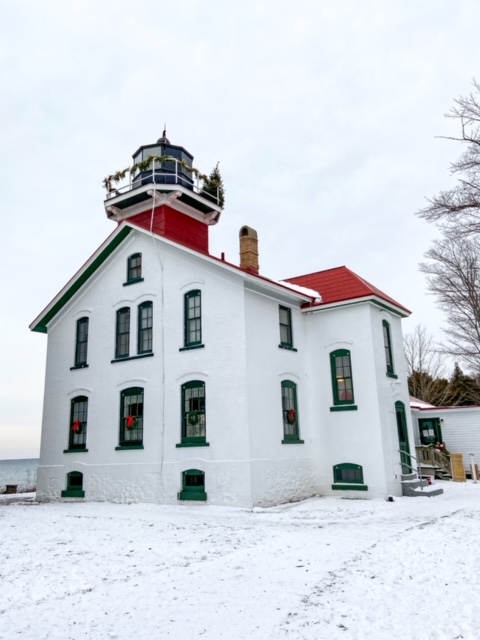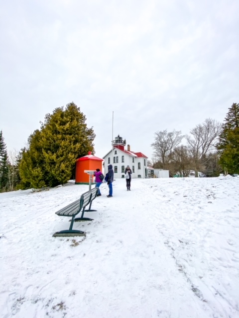 We started our adventure at Hop Lot Brewing – filling up on food and a beer from the comfort of a cozy igloo. After that we stopped by downtown Suttons Bay for coffee and window shopping. Then we headed to Omena to look out at the lake and then appreciate the historic Omena Presbyterian Church. After a quick pitstop in Northport, we drove to the tip of the peninsula to check out the Grand Traverse Lighthouse at the Leelanau State Park.