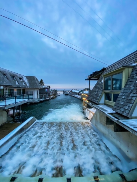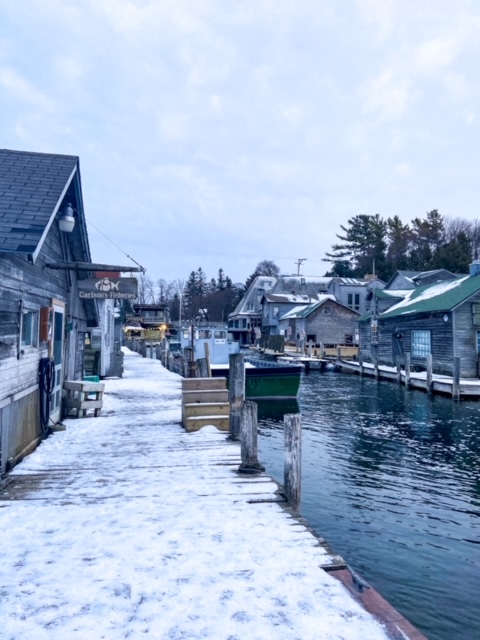 Finally, we headed to historic Fishtown before sunset where we walked around the shanties and watched the water stream into the Leland River.