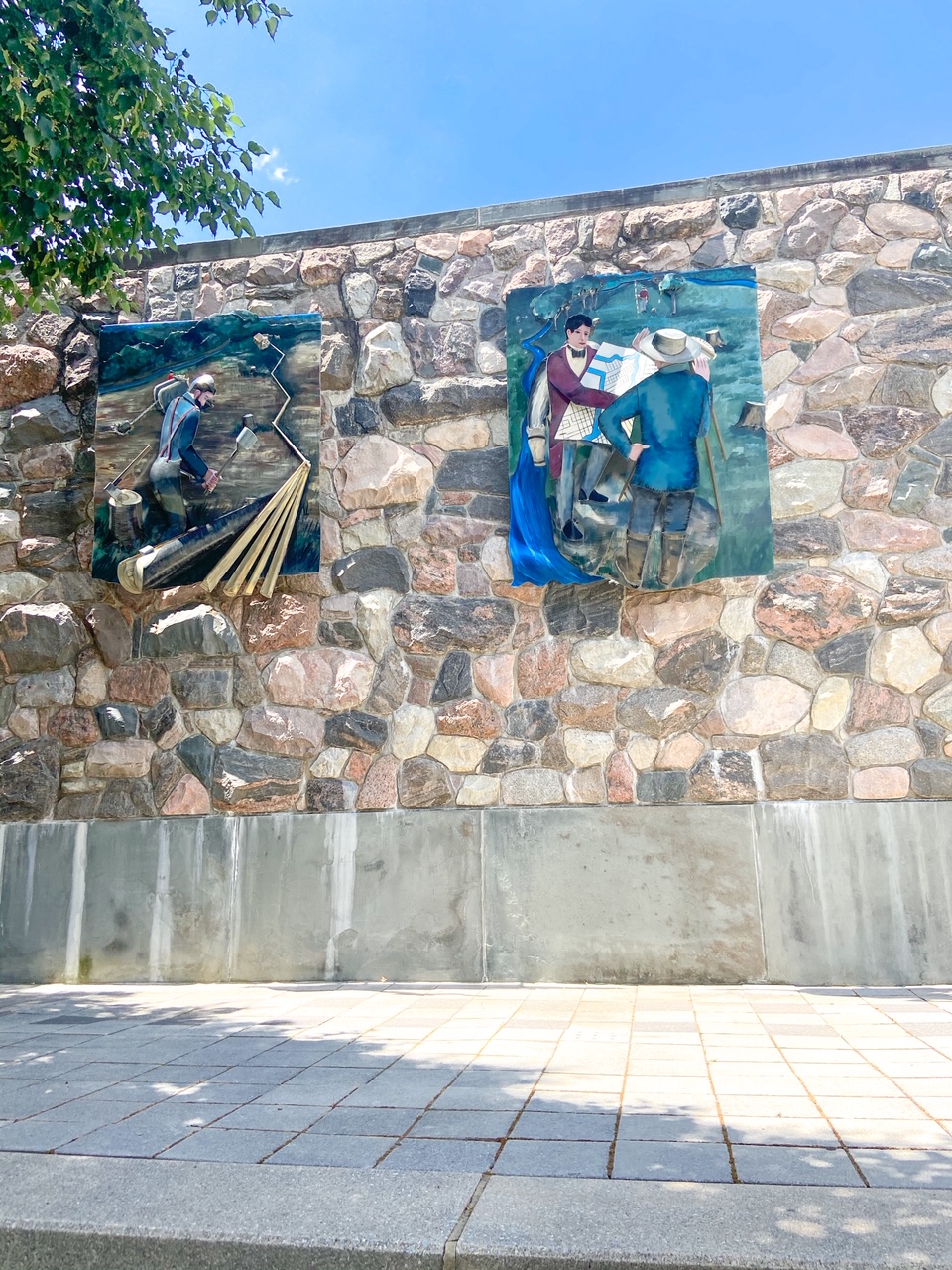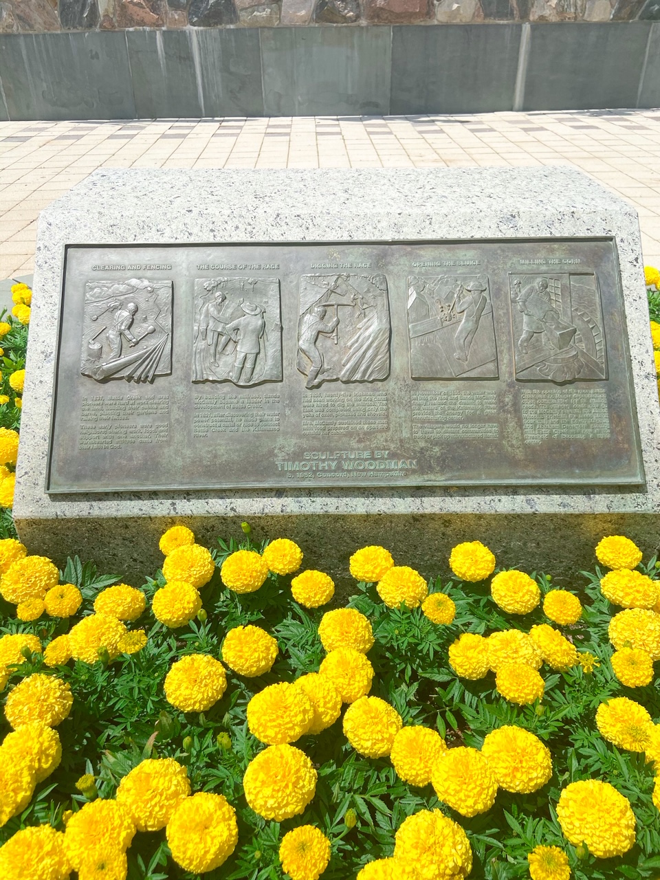 On either side of the waterfall there are 5 sculptures hanging on the wall. These sculptures show the history of Battle Creek around the 1830s when its early settlers built a canal or “race” to connect Battle Creek to the Kalamazoo River. There is a plaque that explains what each of the sculptures means besides the waterfall bridge.