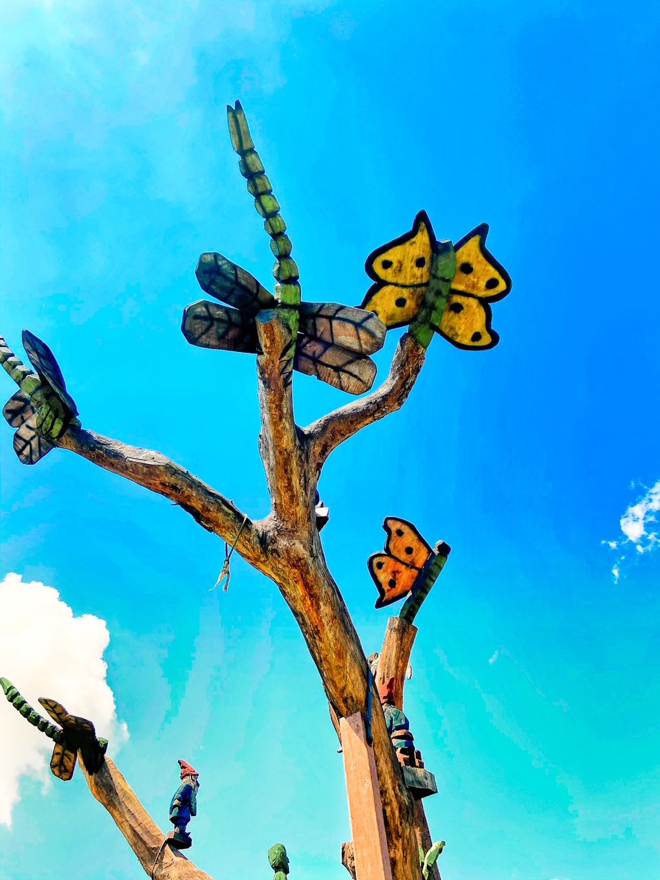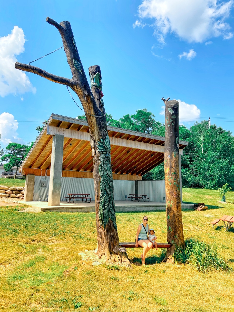 Within the arboretum, just by its entrance is the Fantasy Forest, created in 2015/6. Prior to its creation, a grove of over 100 year old ash trees sat here. By 2013, all of the trees died due to the invasive Emerald Ash Borer. Then the arboretum society called on artists and wood carvers from around the Midwest to submit ideas to redesign the tree trunks and remaining branches. The artists and woodcarvers left behind a beautiful fantasy land of wizards, castles, and other mythical creatures for the public to enjoy!