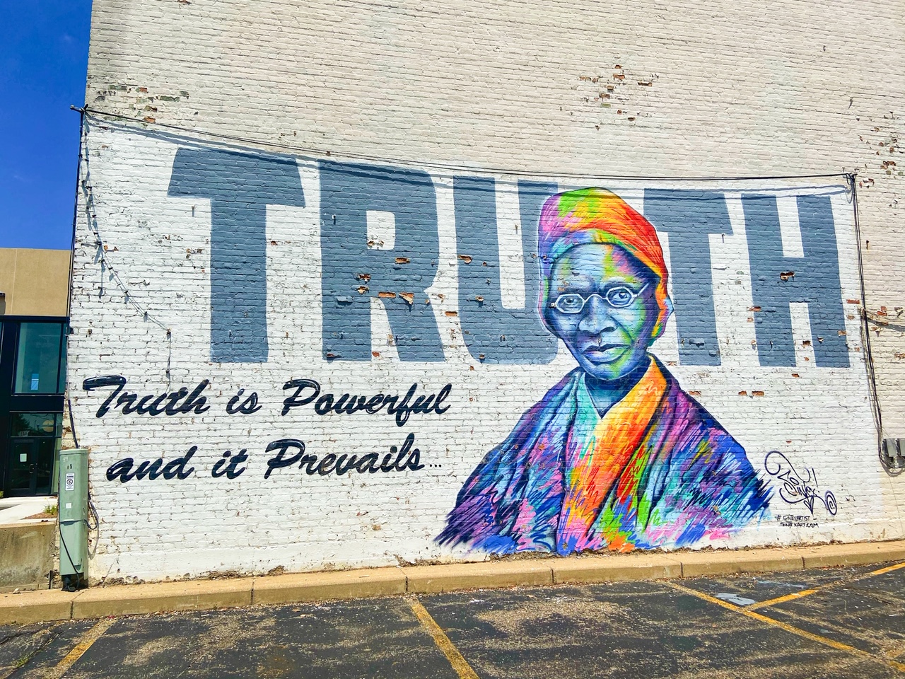 Prior to going to Battle Creek, I heard about the Sojourner Truth mural by Detroit artist Sintex. But as we explored downtown, we noticed many murals located on the sides of buildings. While admiring the public art, I discovered Battle Creek’s put on an annual Street Art fair annually in mid August called “Color the Creek.” The purpose of Color the Creek is to add vibrancy, create positive energy, and ignite the creative spirit.