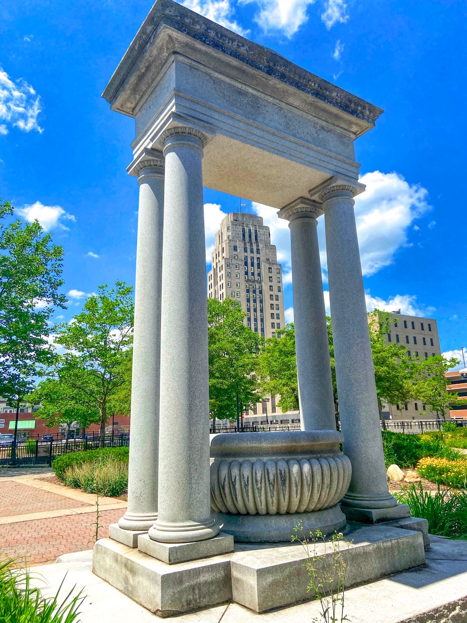 The Mill Race Park is located within downtown Battle Creek. It includes an urban waterfall, shaded picnic tables and a children’s playground. This park is beautiful, clean and modern!