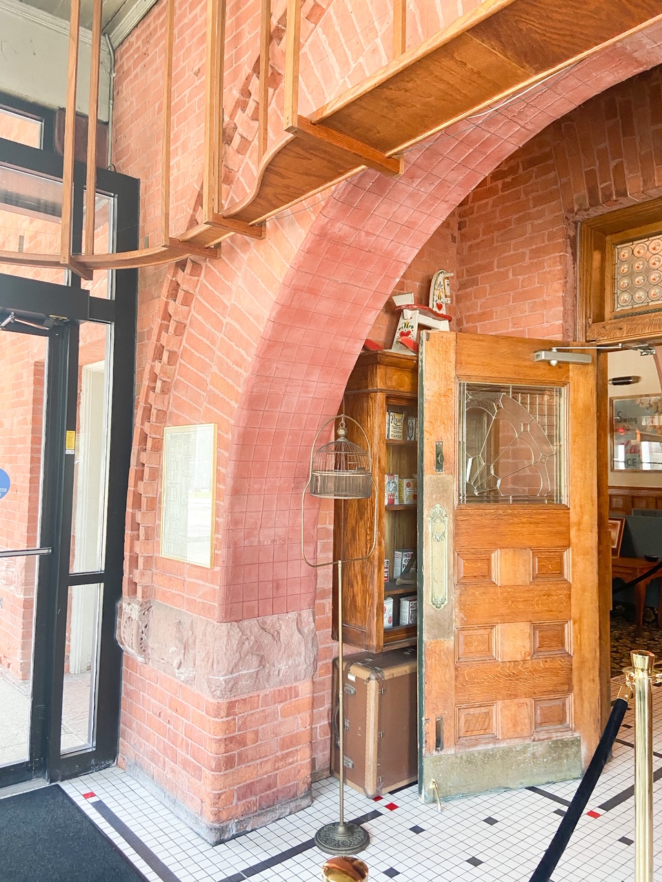 After walking up and down Michigan Avenue, we grabbed lunch. Conveniently located a short walk across the River from downtown is the restaurant Clara’s on the River. Clara’s is in the historic Battle Creek train depot built in 1888. The need for a train station arose in the late 1800’s after a US Army training site was established at nearby Fort Custer. It was from this depot that WWI and WWII soldiers departed on their voyage overseas. The depot is on both the National and State Historic Registries.
