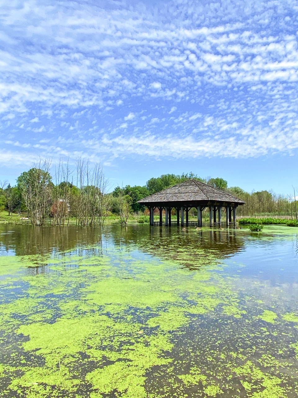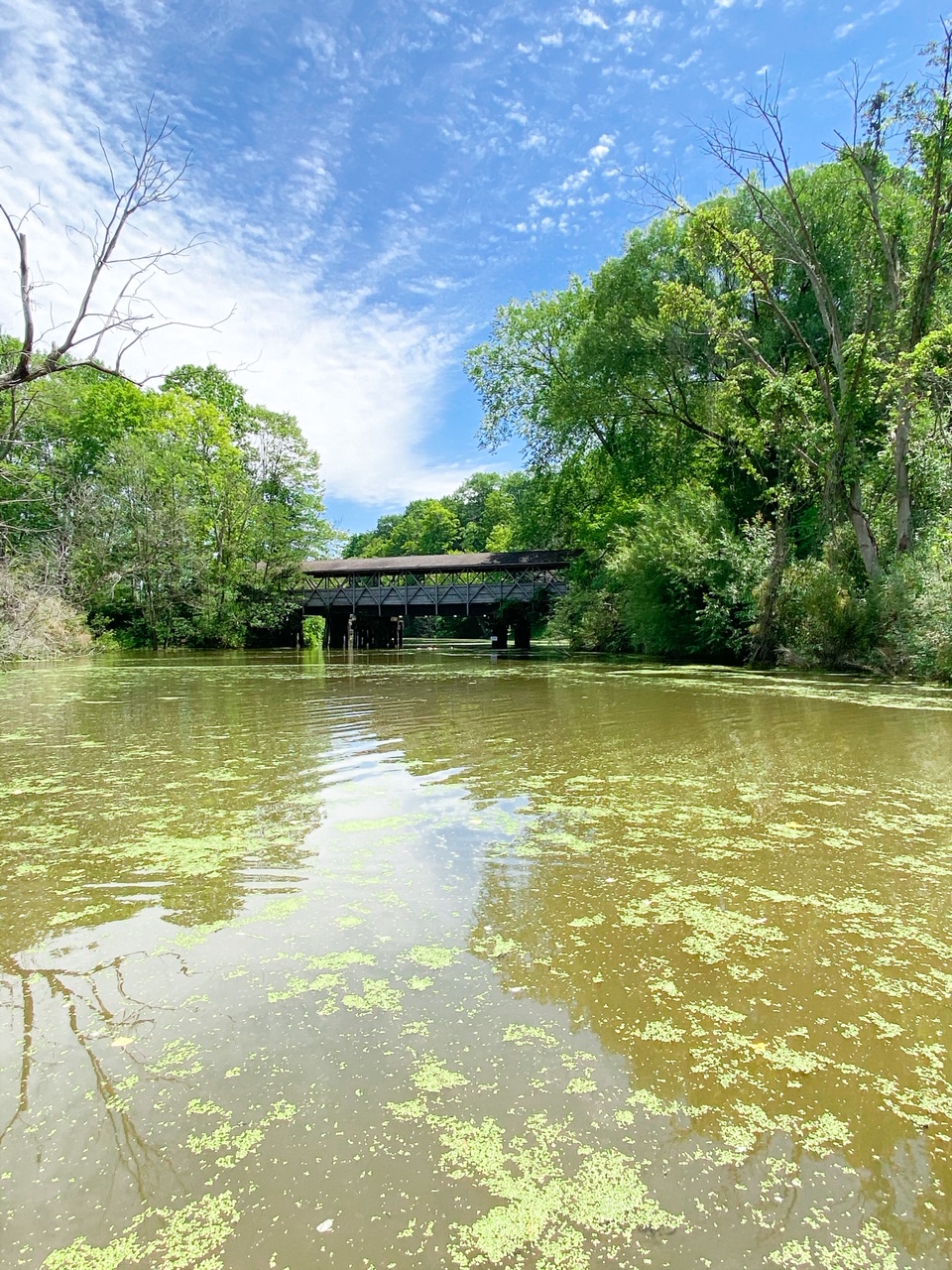 Lasting around an hour, the tour aboard the Lindy Lou took us along the Black River until we reached the Kal-Haven bridge. The cruise is calm and peaceful. Our son Winston even took a nap for part of it! We saw charming and interesting cottages, passed under a number of roadway bridges, and spotted a flooded pedestrian gazebo at a park (well, it once was a park).