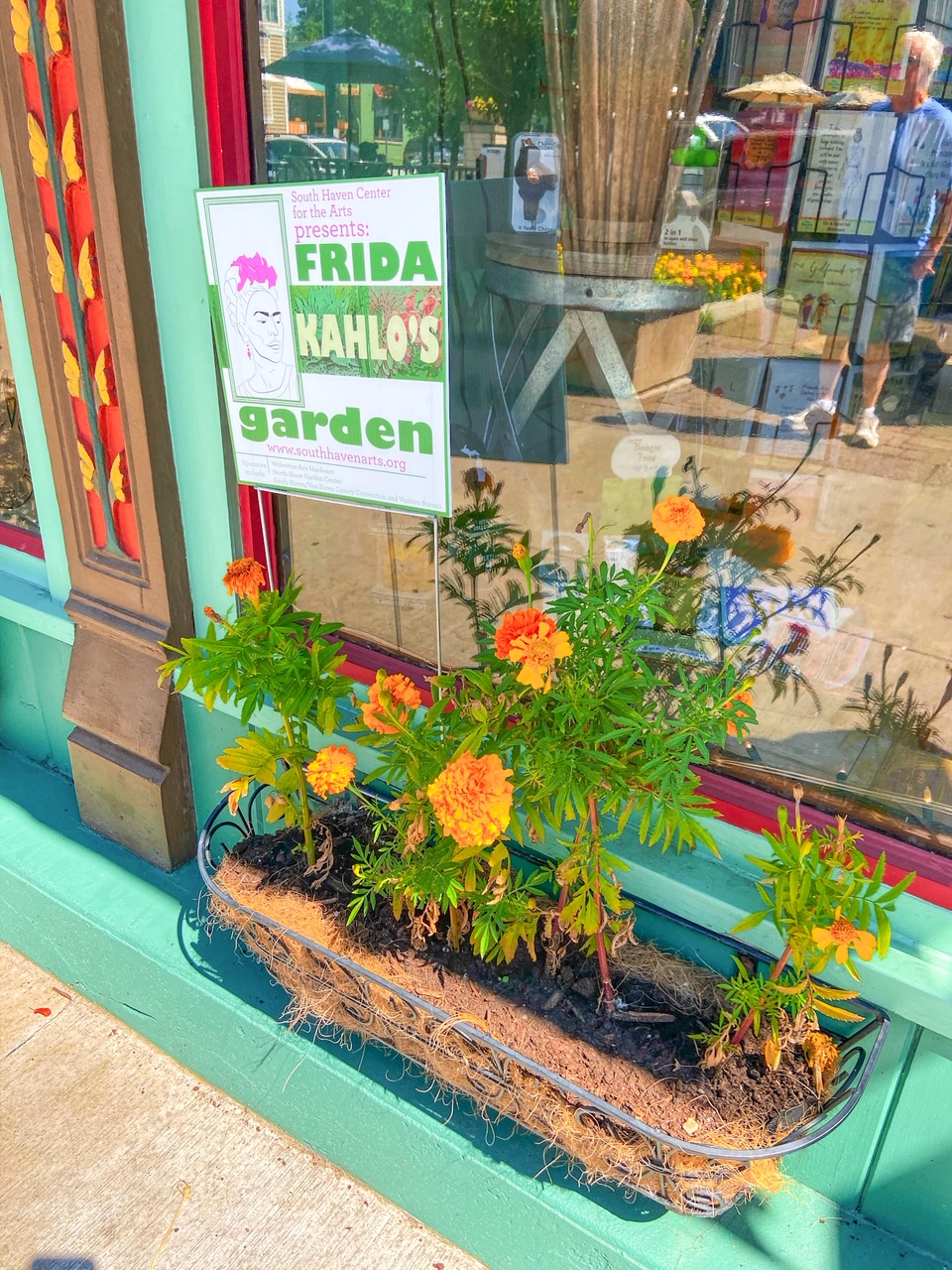After spending a few minutes taking in all the activity around us, we headed back towards town. The main street in South Haven is Water Street and is only a couple blocks long. Those two blocks are packed with restaurants, coffee shops, wineries, souvenir shops, and many more. At the time, many local businesses partnered with the South Haven Center for the Arts to display calla lilies, sunflowers, zinnias, elephant ears, and succulents as part of the Frida Kahlo Garden Walk.
