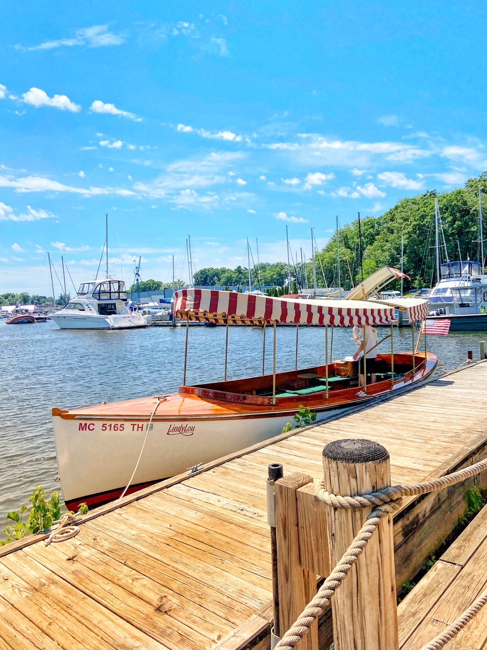 Because Winston is not 4 years old, we could only charter the river boat Lindy Lou at the time. The Lindy Lou is a replica Truscott fantail river launch. Used along the Black River from 1890s to 1930s, this boat brought summer vacationers arriving on large steamships from Chicago to their resorts, picnic spots, and everyday cruises along the Black River.